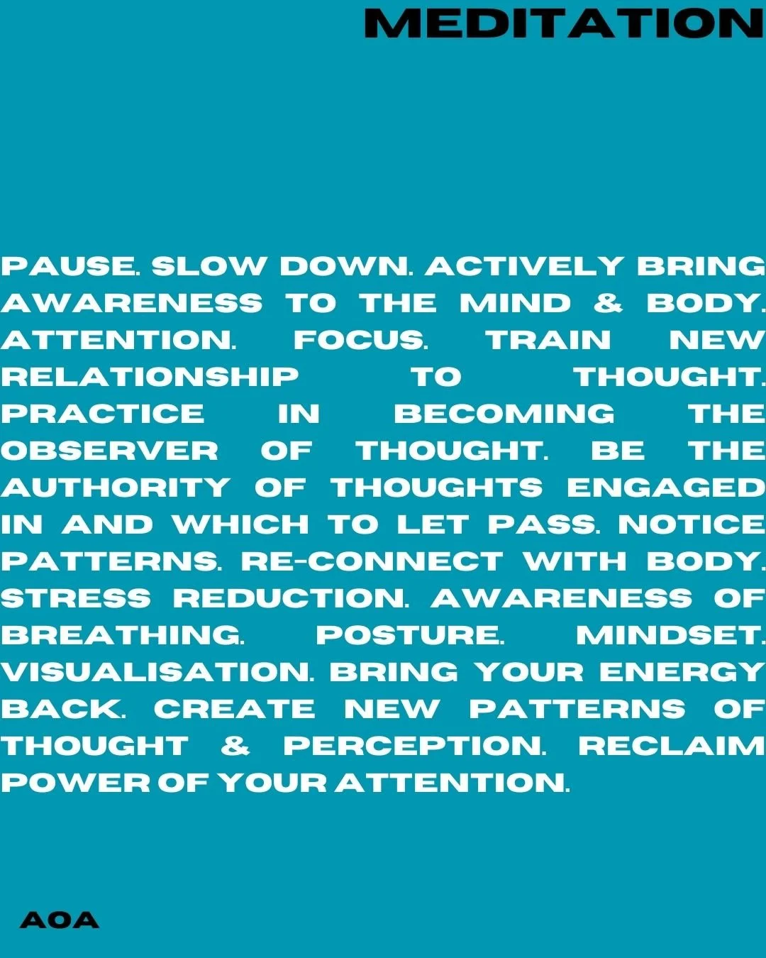 Meditation, amongst many things, is awareness of one’s experience - both inner & outer - eventually the practice develops the capacity to be with everything and anything that shows up.